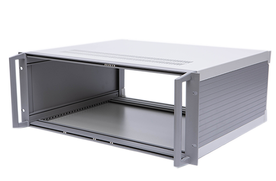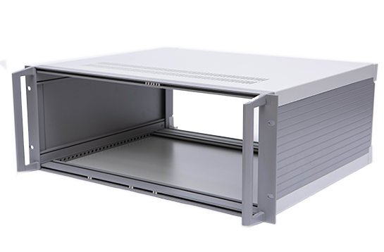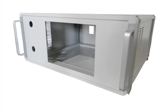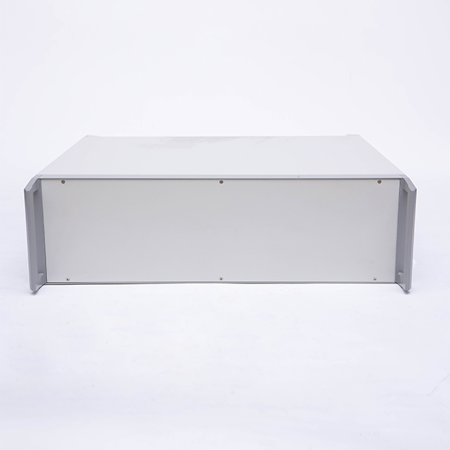 G型機(jī)箱由蓋板,底板,前面板,后面板,側(cè)板,前梁,后梁,前法蘭,后法蘭等配件組裝而成,為機(jī)架式機(jī)箱,把手兩側(cè)帶有耳朵直接固定的機(jī)器內(nèi)。機(jī)箱表面處理分為噴塑、氧化等。