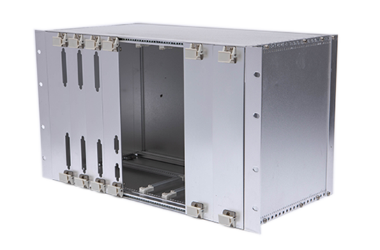 F型機(jī)箱由蓋板,底板,前面板,后面板,側(cè)板,前梁,后梁,前法蘭,后法蘭等配件組裝而成,為機(jī)架式機(jī)箱,把手兩側(cè)帶有耳朵直接固定的機(jī)器內(nèi)。