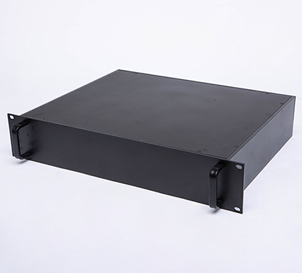 B型機(jī)箱由上蓋板,下蓋板,前面板,后面板,側(cè)板,前后梁,帶耳把手等配件組裝而成,為機(jī)架式機(jī)箱,把手兩側(cè)帶有耳朵直接固定的機(jī)器內(nèi)。