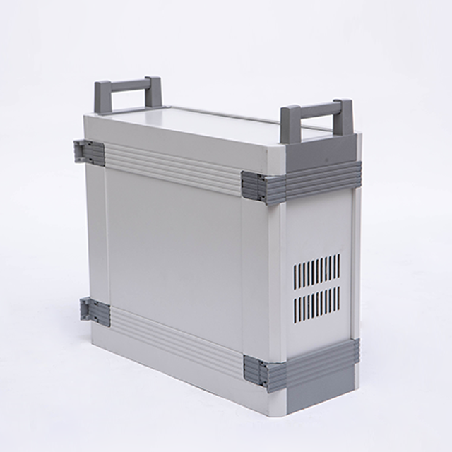 H型機(jī)箱由上蓋板,下蓋板,前面板,后面板,側(cè)板等配件組裝而成,可做為機(jī)架式或臺(tái)式機(jī)箱,把手有多款可供選擇,分別有:金屬把手,立柱把手,金屬折疊把手,伸縮型塑料把手,大提手等。標(biāo)配型機(jī)箱表面經(jīng)噴塑處理,噴塑的塑粉顏色可以按照客戶要求選定,白、灰色為行業(yè)首選的經(jīng)典顏色。另前、后面板可以做氧化等工藝處理。此款機(jī)箱高、寬、深可任意定制。標(biāo)配機(jī)箱的兩側(cè)側(cè)板有兩條散熱孔,散熱孔可以按照客戶要求訂制。還可以提供開孔,壓鉚,銑深等來圖加工服務(wù)。內(nèi)部的安裝底板為安裝元器件固定所用,為選配鋁板,可以提供開孔處理。此款機(jī)箱為本公司加工時(shí)效最短出貨的款式,具體請(qǐng)來電咨詢。